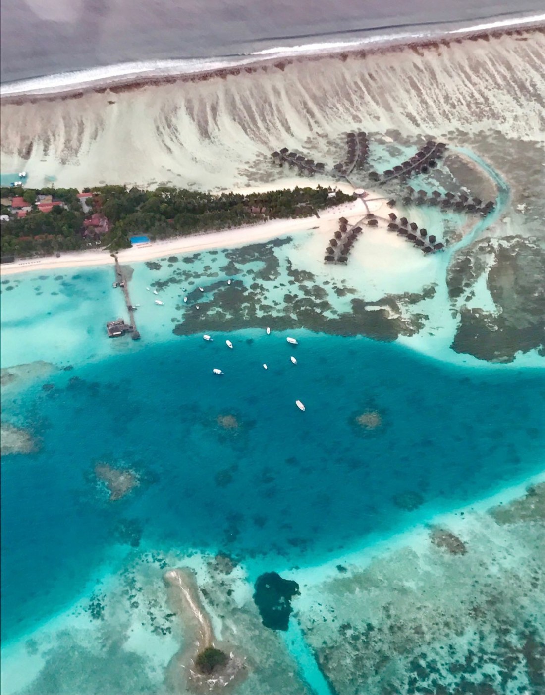 El aeropuerto internacional está en Malè. Es importante que decidas la ubicación del hotel donde te quieres hospedar porque va a impactar en los costos. Por ejemplo: el hotel donde me hospedè, hay que tomar un vuelo en avioneta y después un pequeño bote. El costo de la avioneta es $360 dólares americanos. Normalmente el hotel se encarga de hacer la reservación por ti. Es importante que confirmes bien los datos con el hotel y verificar si vas a necesitar transporte aéreo o sólo marítimo.