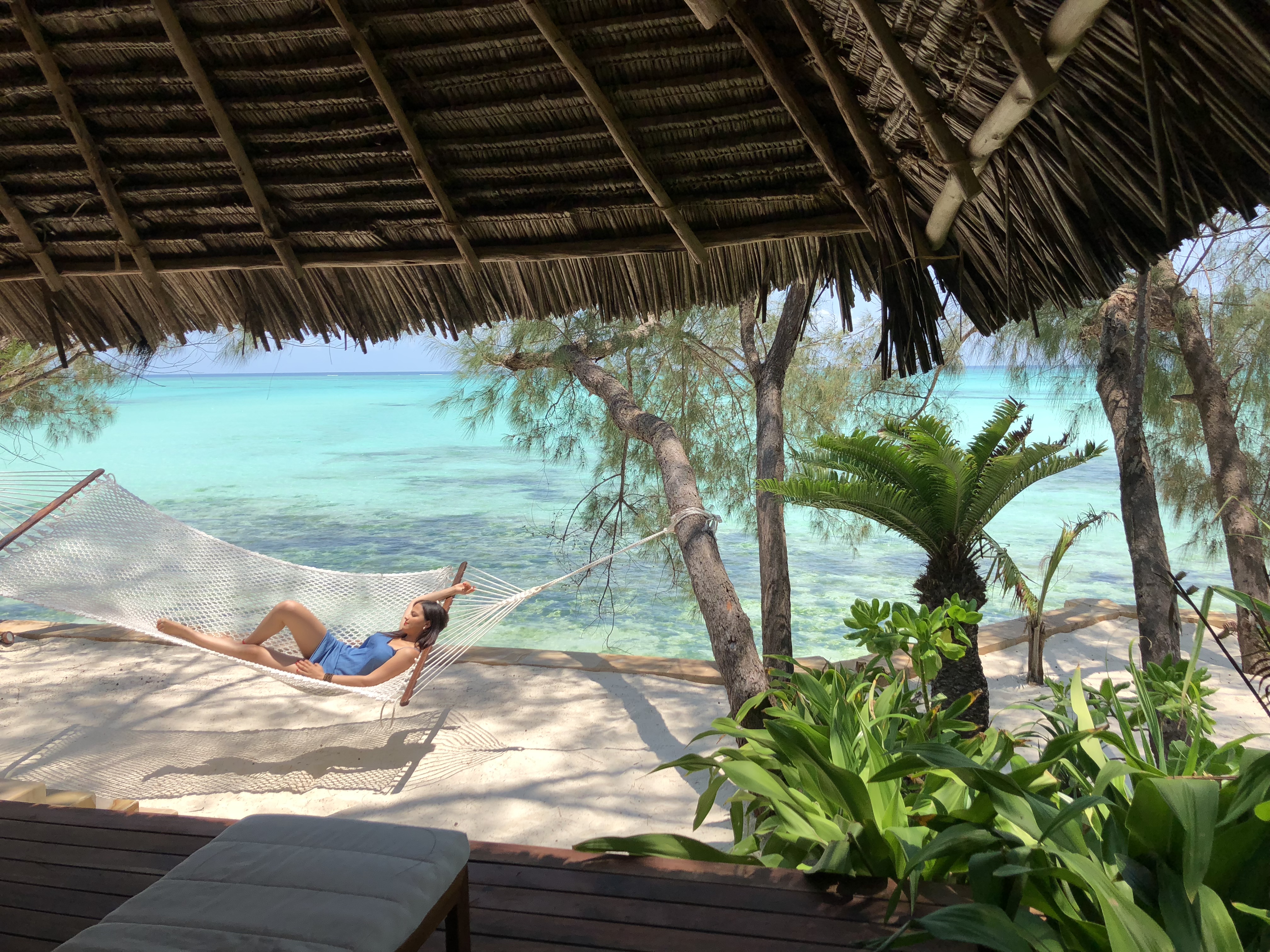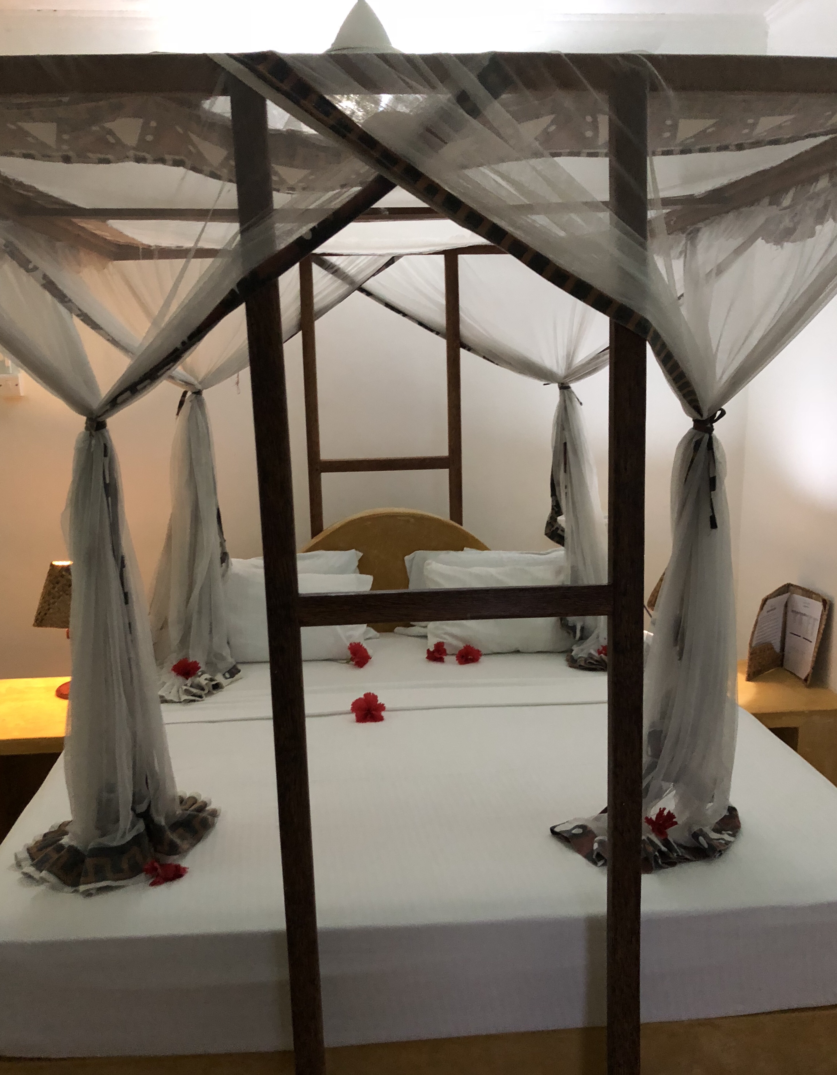 Està ubicado en Pongwe. No es barato pero el lugar es hermoso y las atenciones son de primera clase . El costo es aproximadamente $820 dólares americanos por noche. La playa es hermosaaaa. Durante el día la marea es baja así que puedes caminar y ver los peces y estrellas Del Mar. Y durante la tarde la marea es un poco más alta pero puedes utilizar unos de los kayaks del hotel sin costo adicional (si eliges el paquete todo incluido). Durante las noches tienen actividades diferentes, bailes típicos o cantantes locales.