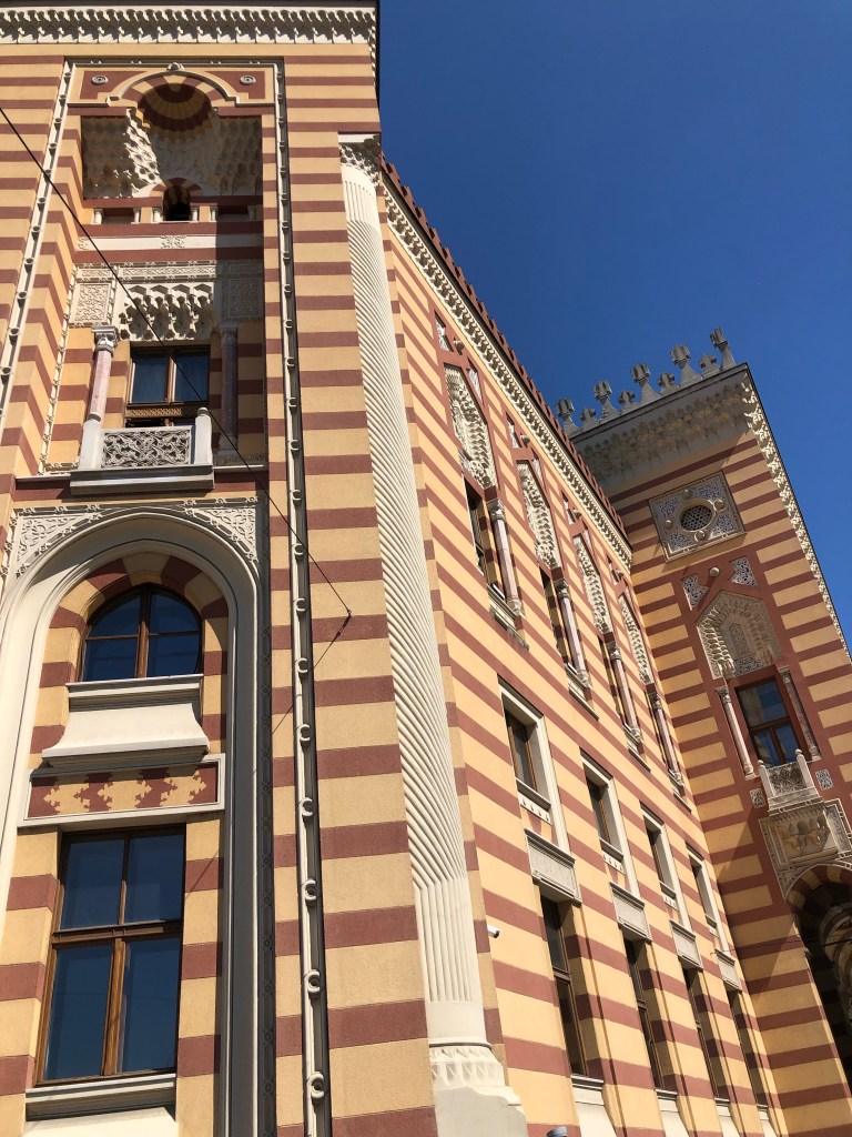 Conocido como Vijećnica. Fue diseñado en 1891 por el arquitecto checo Karel Pařík y fue el edificio más grande y representativo del período austrohúngaro en Sarajevo y sirvió como ayuntamiento.